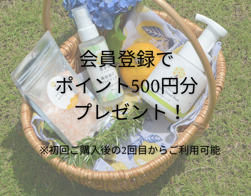 島香房オンラインショップでは、ご入会特典として"2回目"のお買い物から使える、500ポイントをプレゼントしています。